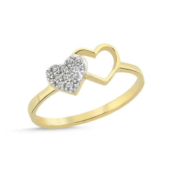 9ct Yellow Gold Cubic Zirconia Heart And Open Heart Ladies Ring.