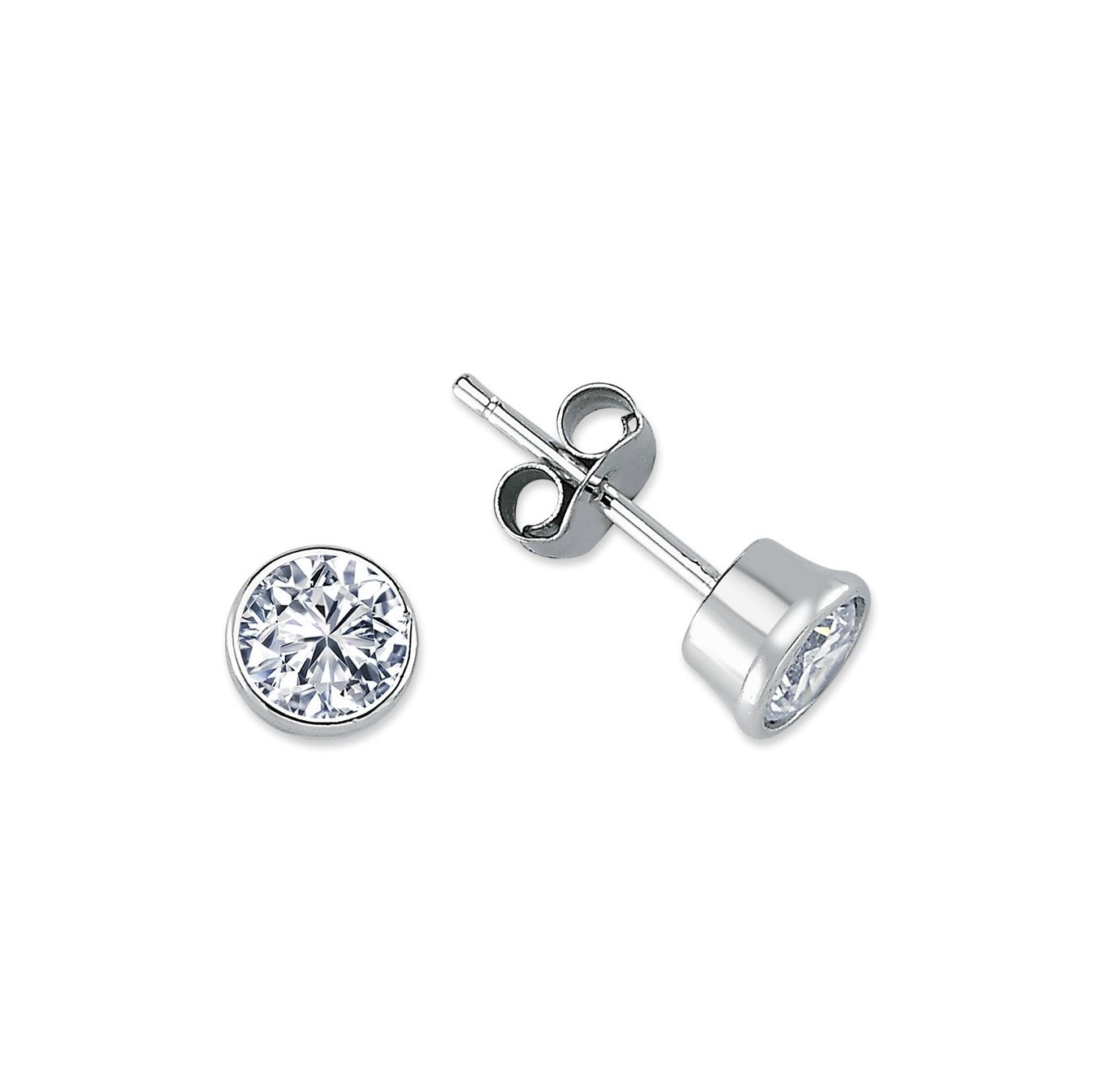 Silver Round Rubover Cubic Zirconia Studs 7mm